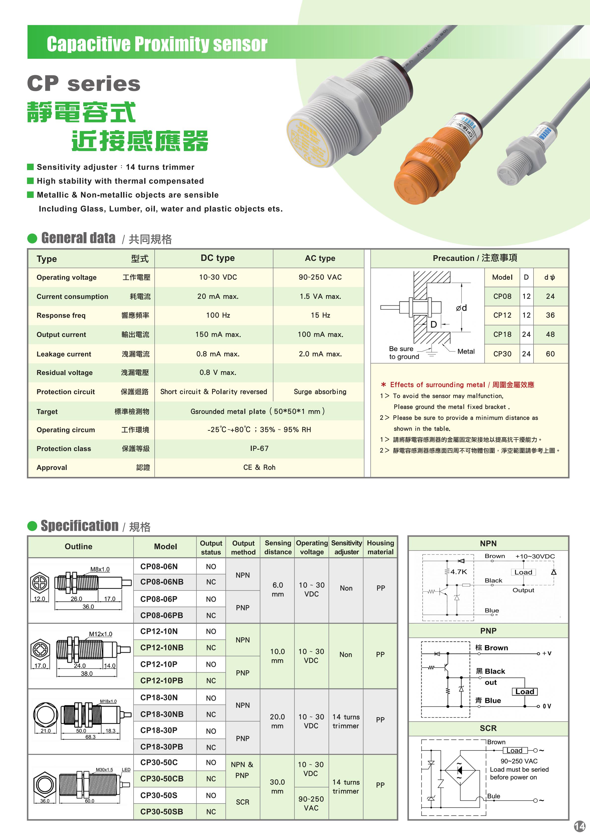 接近开关 > CP系列静电容式接近开关
