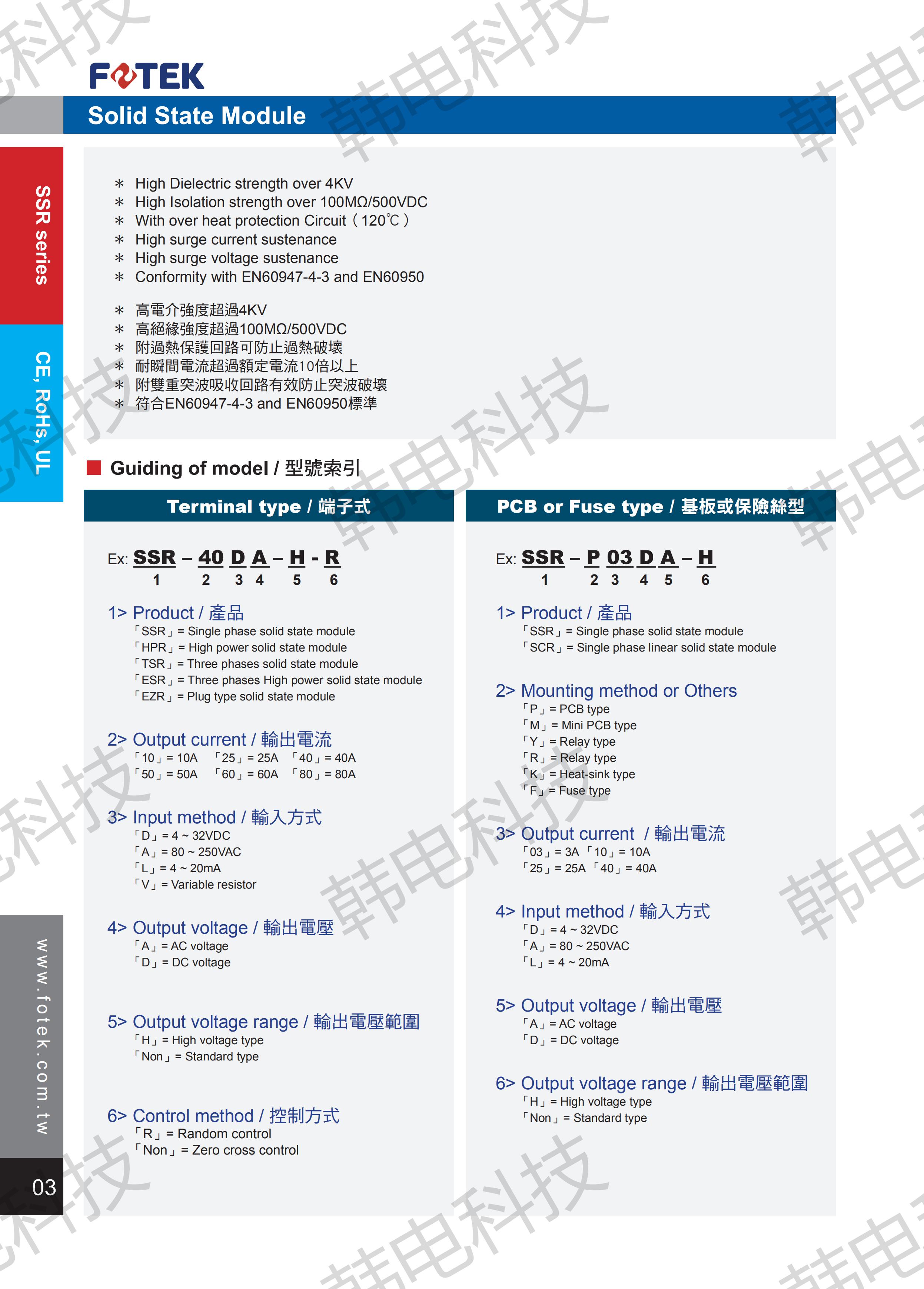 SCR-F-LA系列保险丝型线性控制固态继电器