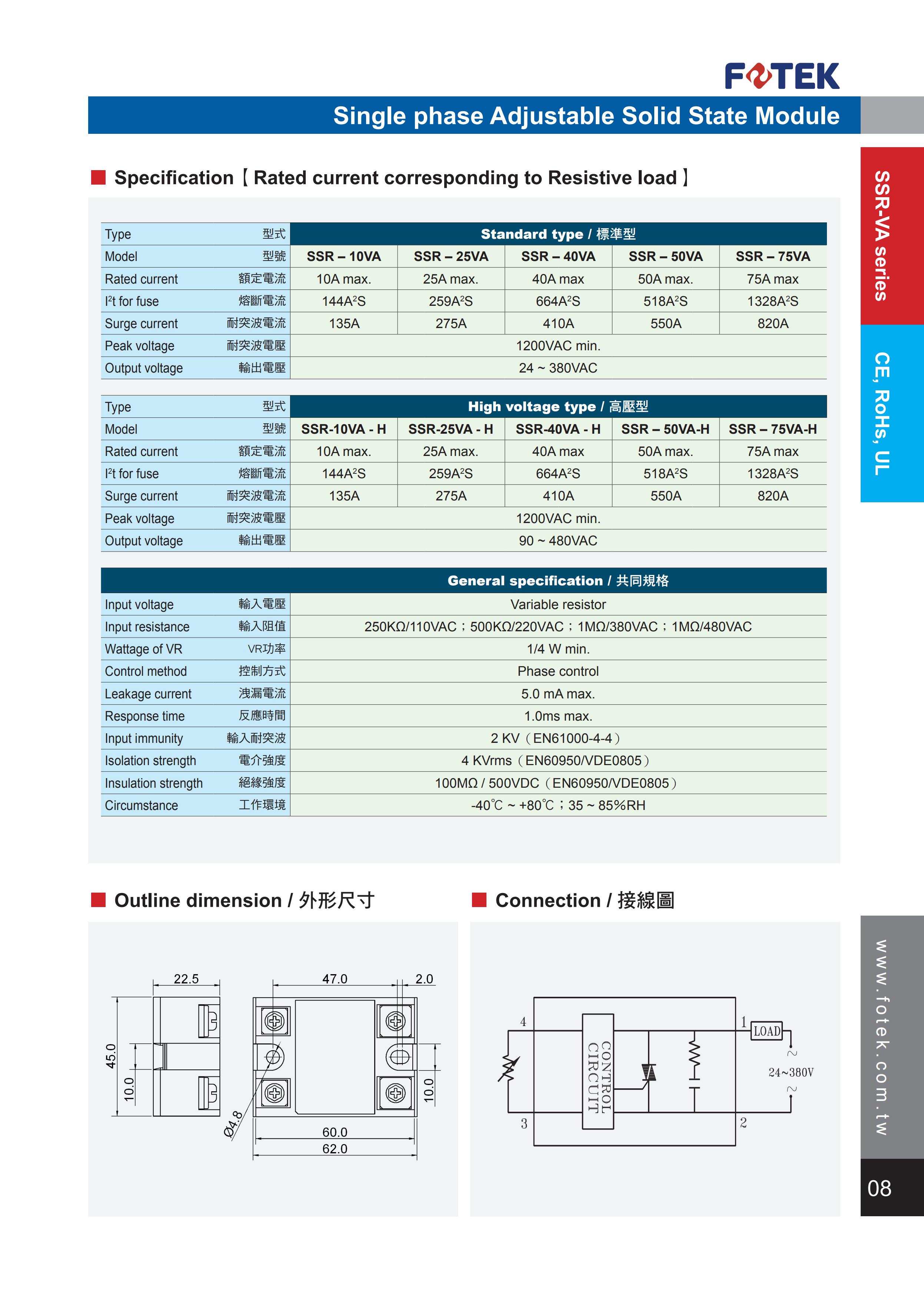 SCR-F-LA系列保险丝型线性控制固态继电器