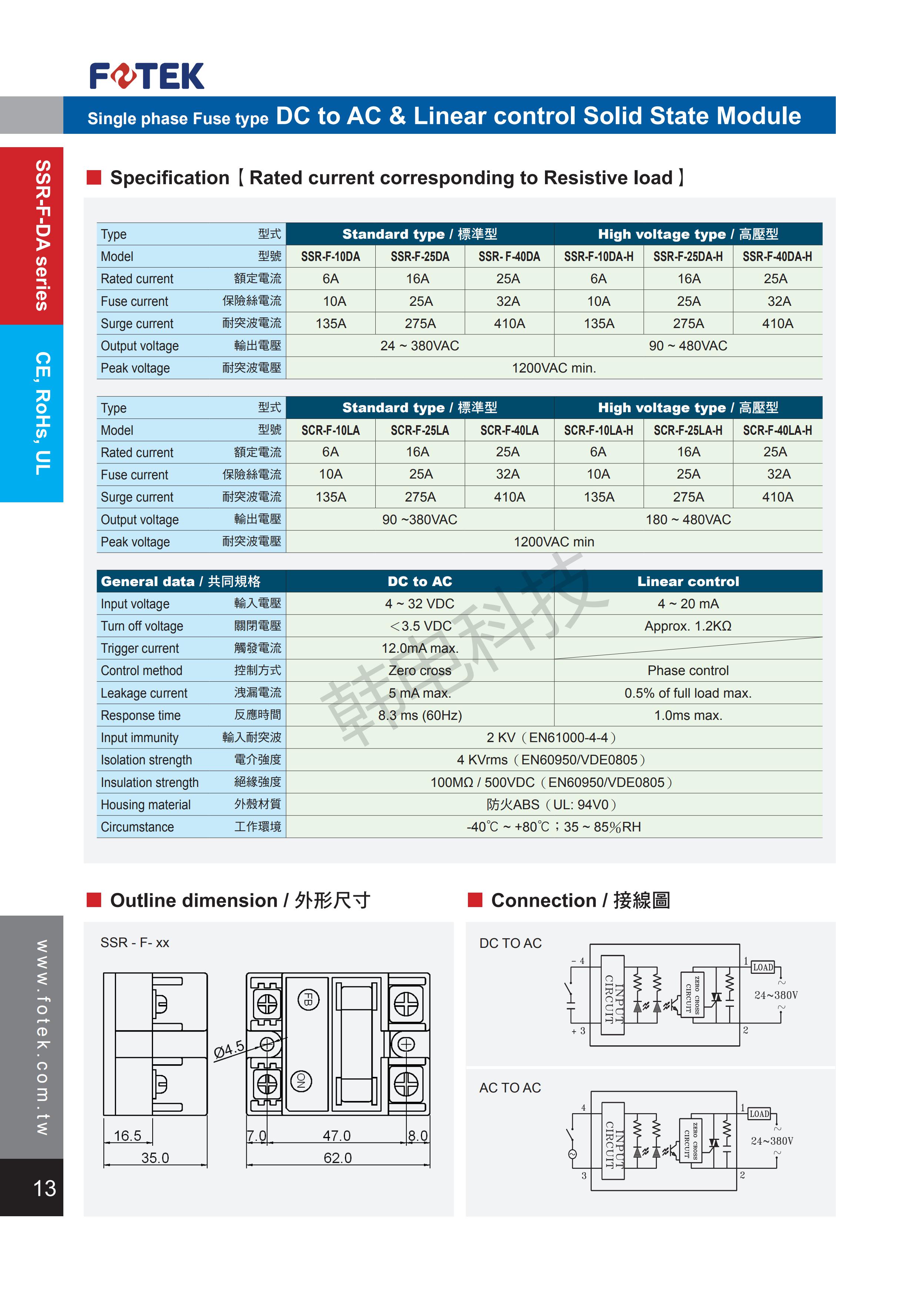 单相固态继电器 > SCR-F-LA系列保险丝型线性控制固态继电器