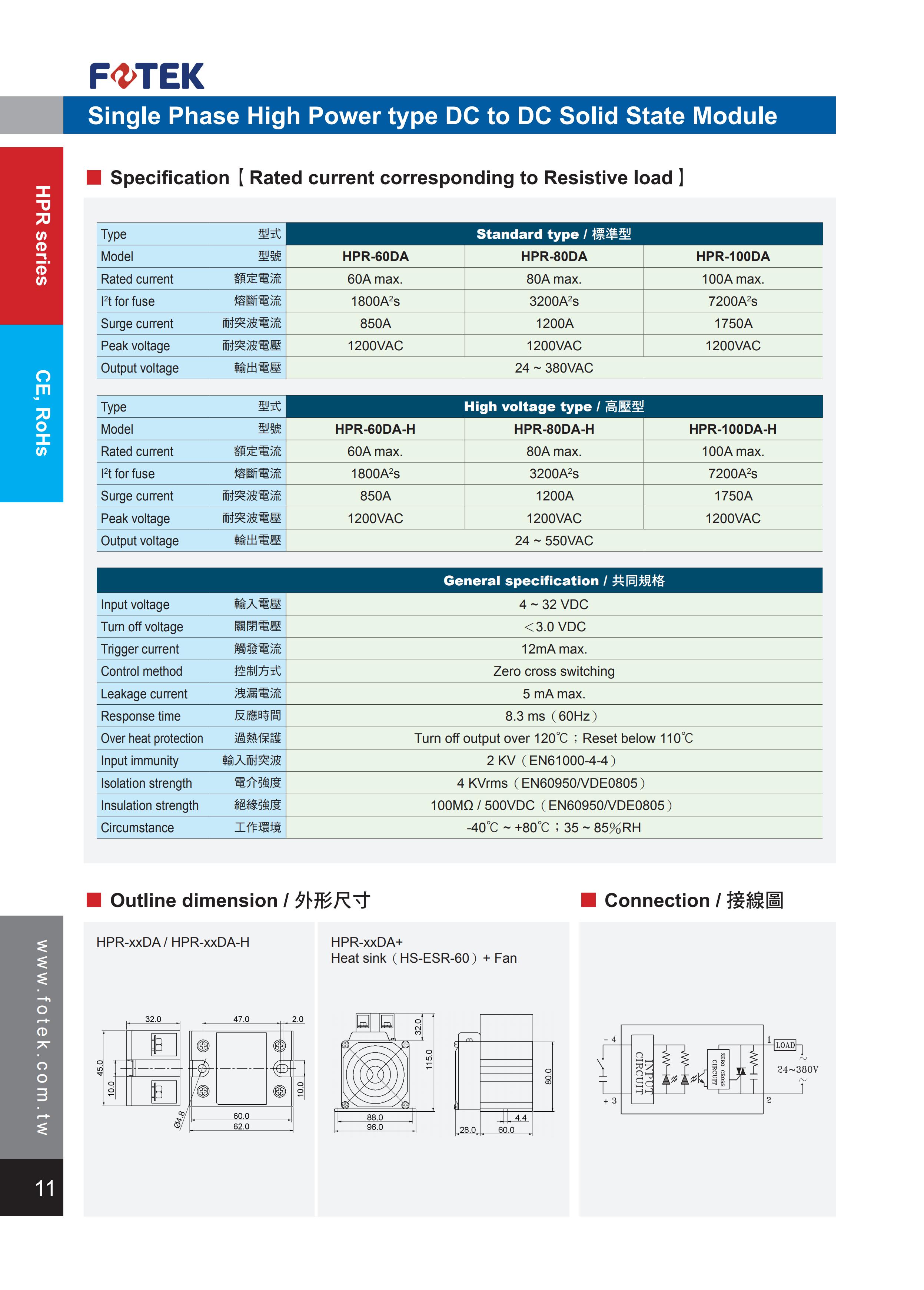 单相固态继电器 > HPR-DA系列单相高功率直流控交流
