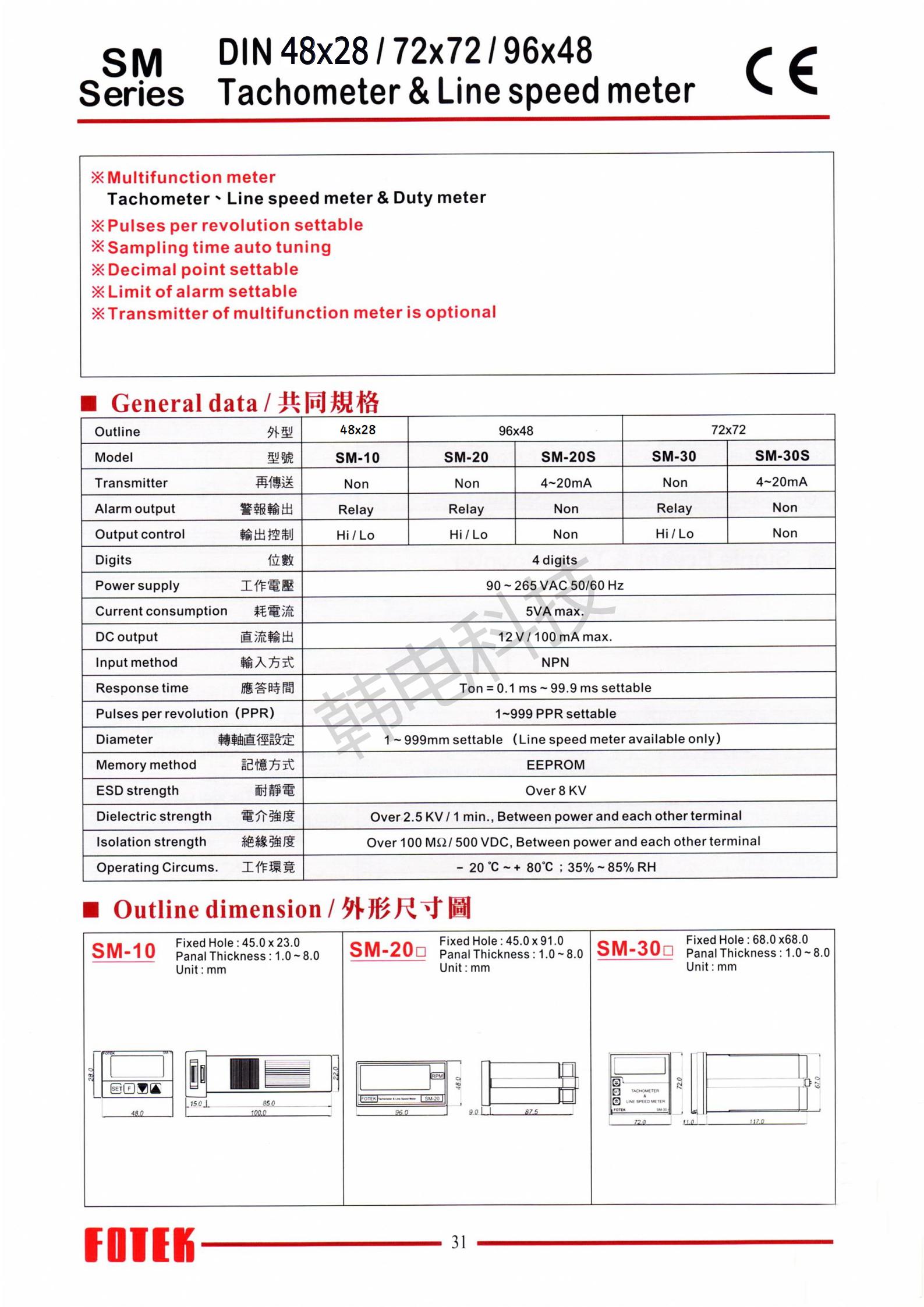 电仪表 > SM系列多功能转(线)速表