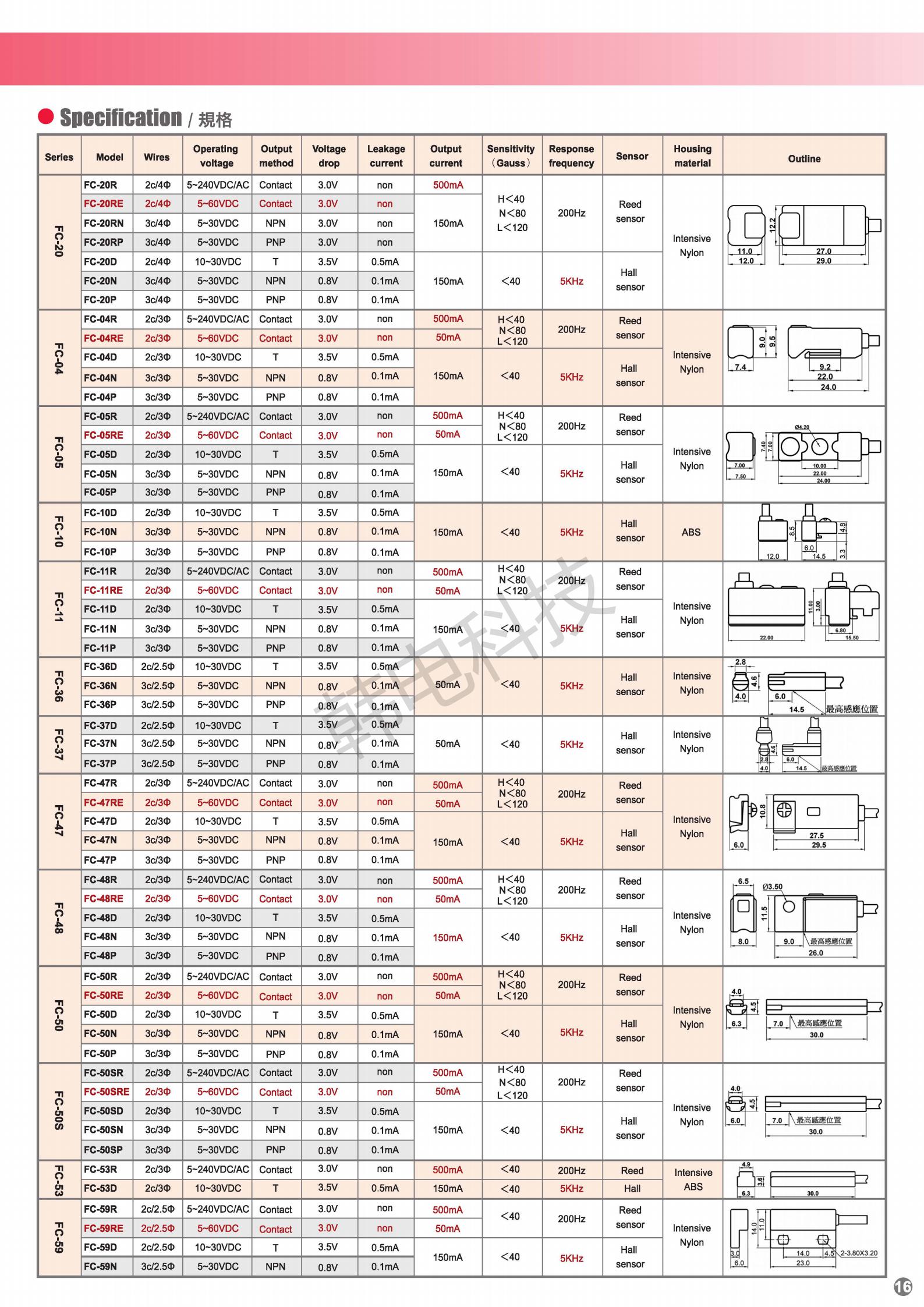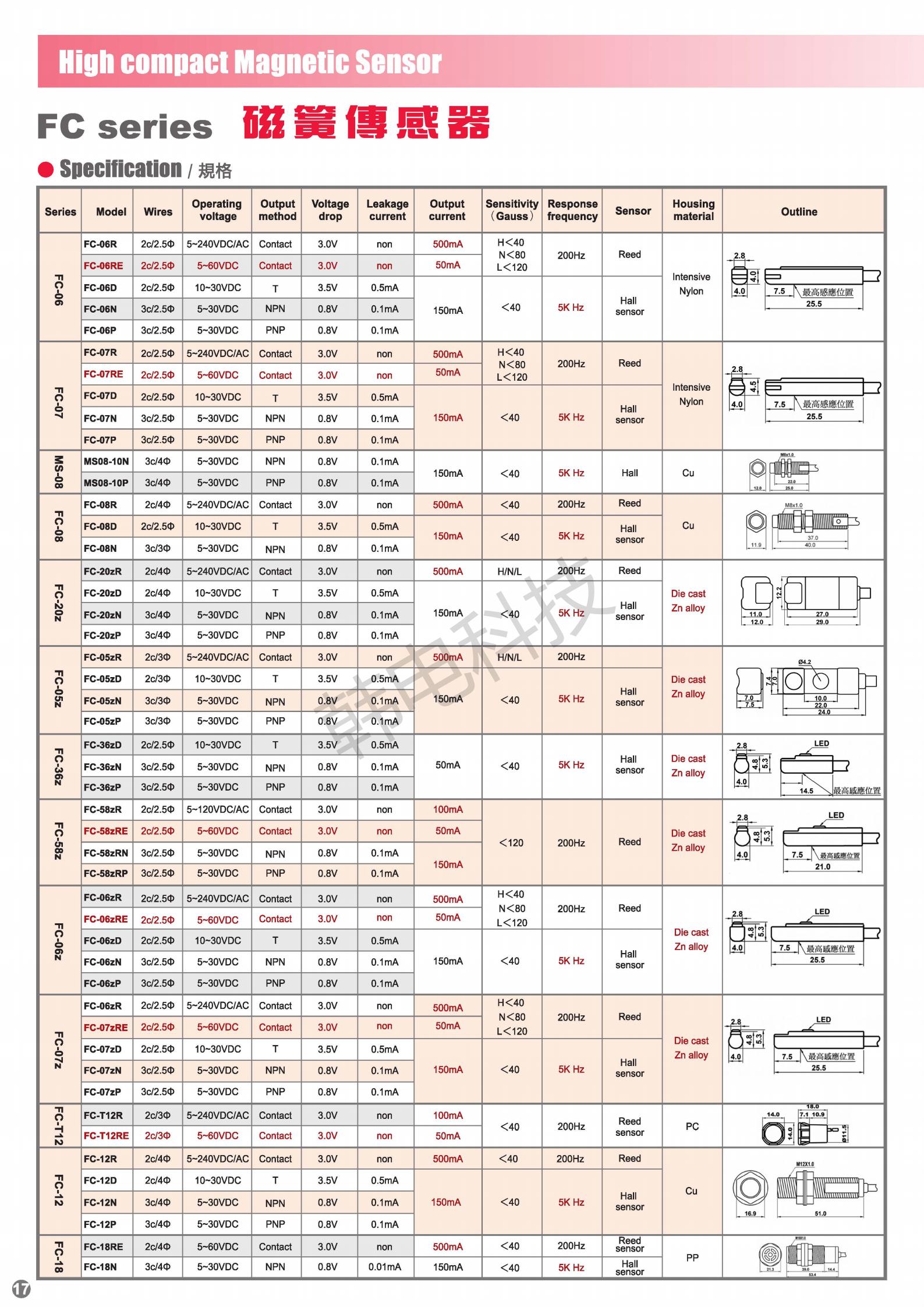 磁簧传感器 > FC系列磁簧传感器
